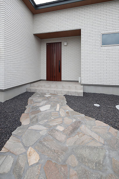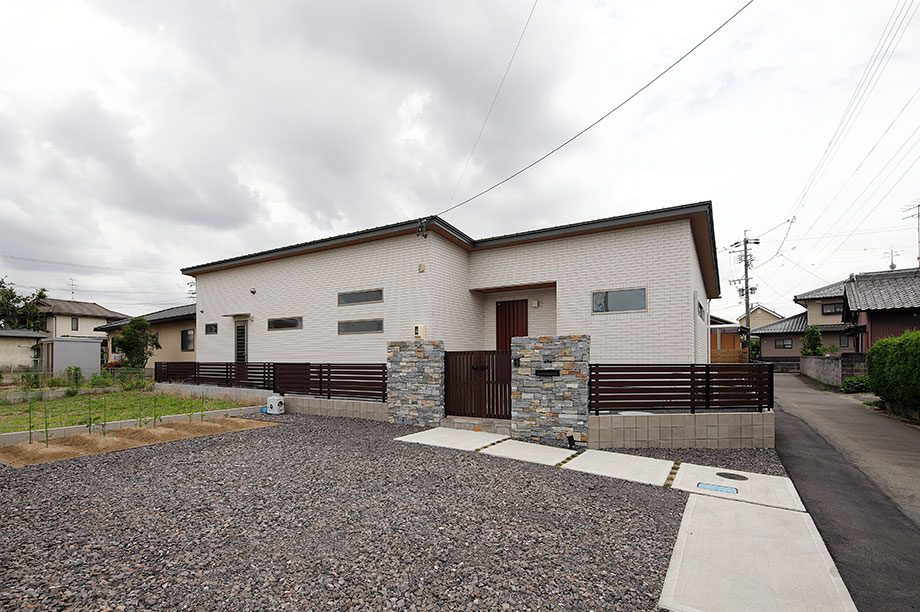 コンパクトで暮らしやすい人気の平屋住宅。子どもが裸足でも気持ちよく遊ぶことができるよう、リビングから縁側、中庭への広がりにこだわりました。