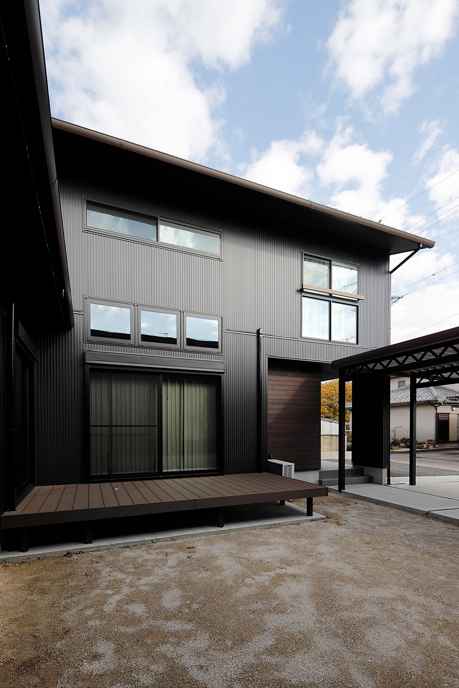 二世帯で暮らす黒が印象的なデザイン住宅。